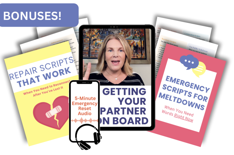 BONUS #3: Repair Scripts That Actually Work - Exact words for reconnecting after you've lost it, from immediate "I'm sorry, my big feelings got too big" to deeper age-appropriate apologies, plus scripts for when they won't accept your apology